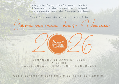 Madame le Maire et le conseil municipal vous présentent leurs meilleurs vœux pour cette année et vous convie à la cérémonie coorganisée avec les associations.